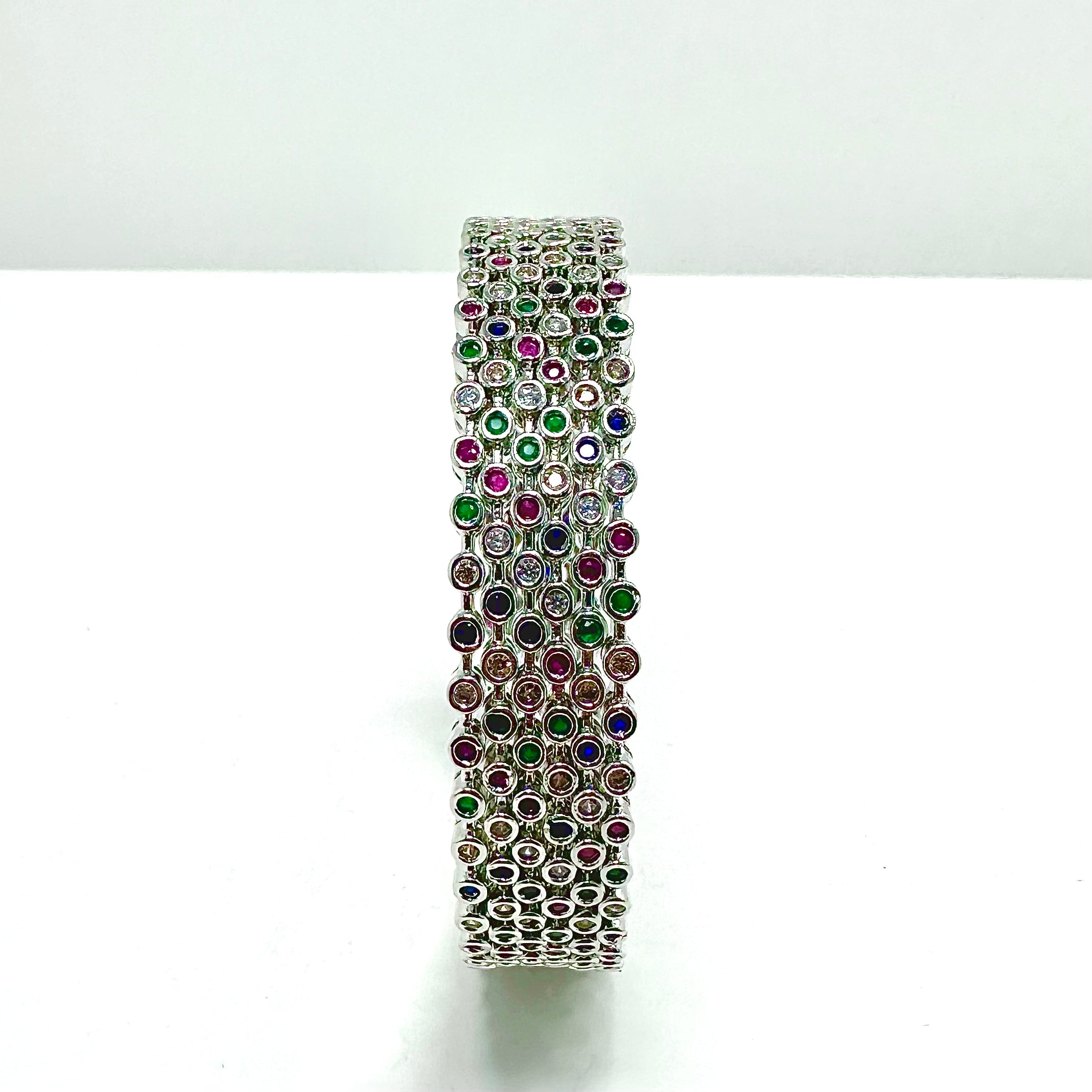 Set of 6 Multi Coloured Thin Silver Bangles