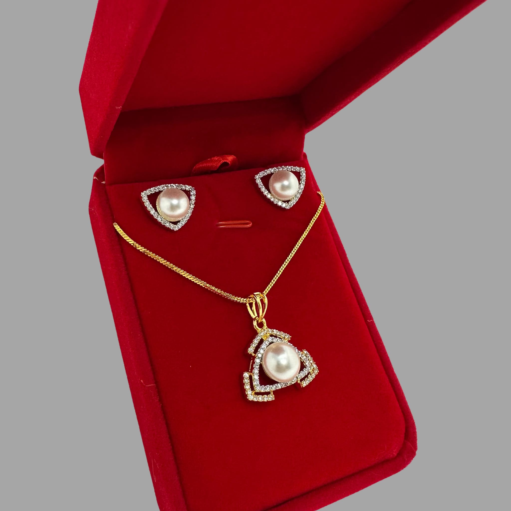 The Tri Locket Set Gold is designed to make a statement. Whether you're dressing up for a wedding, Eid, or a special evening out. Handcrafted with intricate detailing and high quality stones, this set adds the perfect touch of sparkle and sophistication.